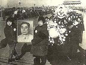 北京各界代表向周恩来遗体告别。