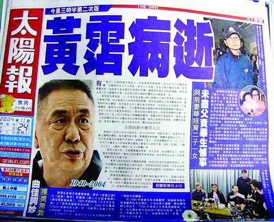 2004年11月24日凌晨零时46分,黄霑在香港沙田仁安医院因肺癌去逝,终年64岁.