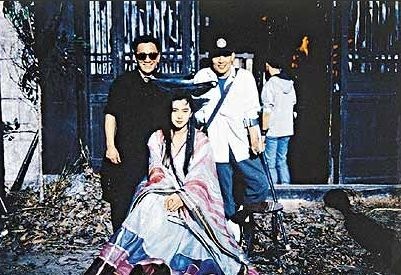 黄霑是《倩女幽魂》配乐,拍戏期间和主角王祖贤、来探班的李连杰合影