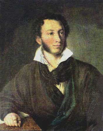 亚历山大·谢尔盖耶维奇·普希金 (1799~1837) 19世纪俄国浪漫主义文学主要代表,同时也是现实主义文学的奠基人。他诸体皆擅,创立了俄罗斯民族文学和文学语言,在诗歌、小说、戏剧乃至童话等文学各个领域都给俄罗斯文学提供了典范。普希金还被高尔基誉为『一切开端的开端 』。